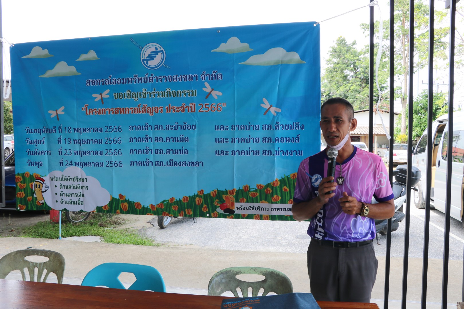 วันที่ 18 พฤษภาคม 2566 เวลาประมาณ 09.30 น. พ.ต.ท.จริน แสง แก้ว ประธานกรรมการฯ , ร.ต.ต.เฉลิมพร  คงพันธุ์ เลขานุการฯ พร้อมด้วยคณะกรรมการฯ และฝ่ายจัดการ ให้บริการและคำปรึกษาโครงการสหกรณ์สัญจรประจำปี 2566 ณ สภ.สะบ้าย้อย จ.สงขลา