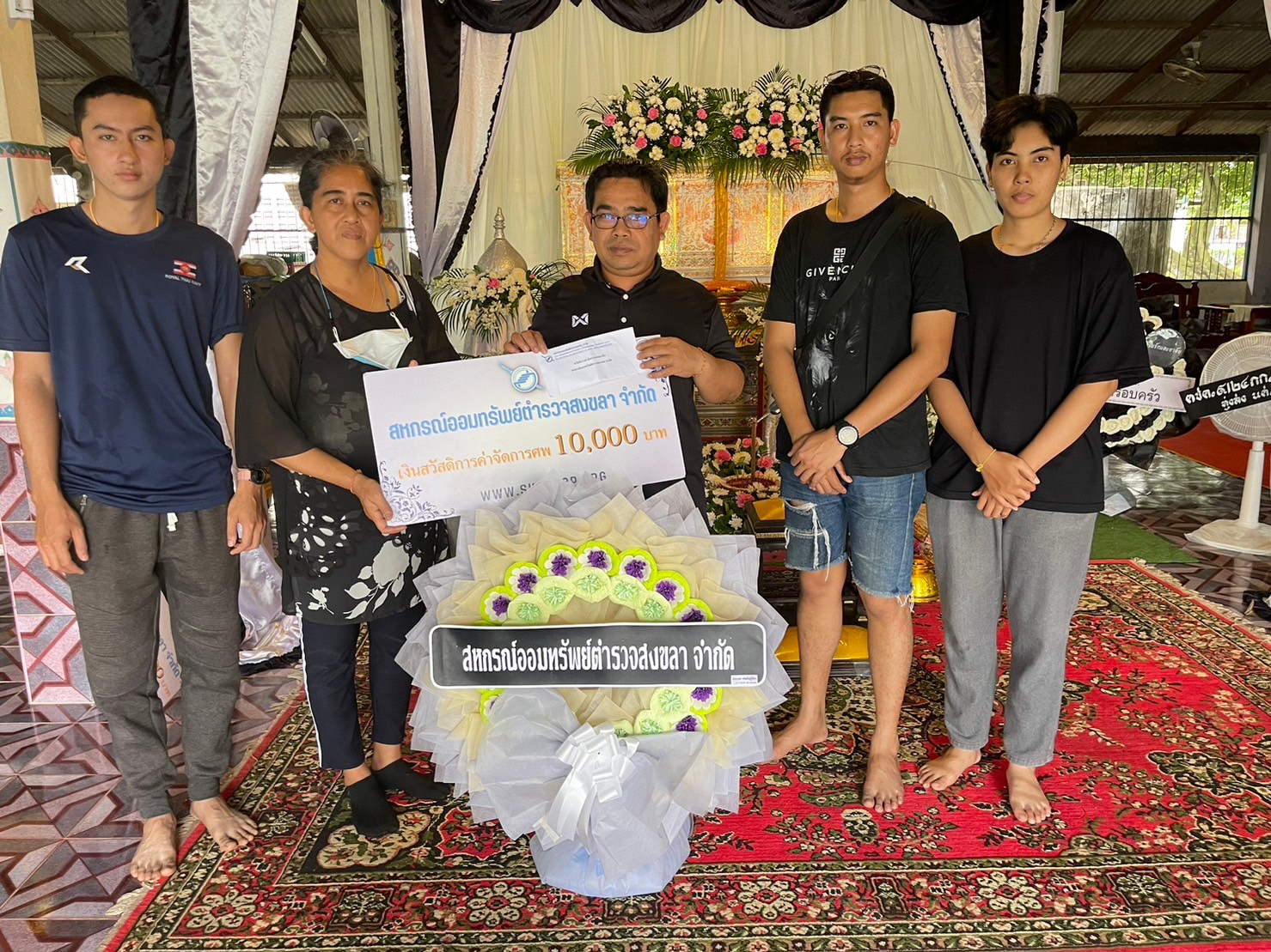 วันที่ 23 ธ.ค.2566 นายธวัชชัย ธรรมรัตน์ ผู้จัดการ เป็นตัวแทนสหกรณ์ออมทรัพย์ตำรวจสงขลา จำกัด วางหรีดเคารพศพ ดาบตำรวจ ปัญญา แก้วกุลนิล สมาชิกข้าราชการบำนาญ ตั้งบำเพ็ญกุศลศพ ณ วัดคูเต่า ม.3 ต.แม่ทอม อ.บางกล่ำ จ.สงขลา ฌาปนกิจศพ ในวันที่ 24 ธ.ค.66 พร้อมมอบเงินสวัสดิการจัดการศพ 10,000 บาท และแจ้งรายละเอียดสิทธิประโยชน์ที่จะได้รับเป็นที่พอใจแก่ครอบครัว