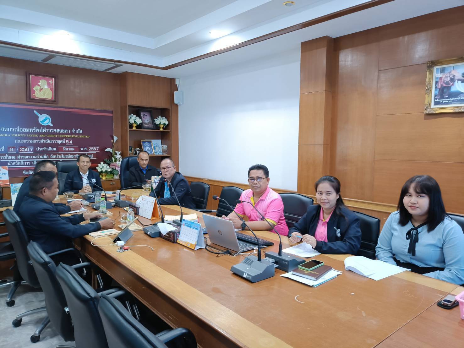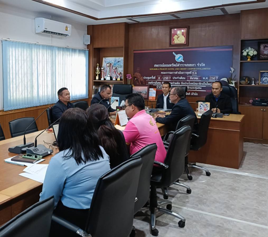 วันศุกร์ที่ 26 เมษายน 2567 เวลา 10.30 น.พ.ต.ท.จริน แสงแก้ว ประธานกรรมการ พร้อมด้วยคณะกรรมการอำนวยการ และฝ่ายจัดการ ร่วมกันประชุมคณะกรรมการอำนวยการ ครั้งที่ 6/2567 ณ ห้องประชุมสหกรณ์ออมทรัพย์ตำรวจสงขลา จำกัด