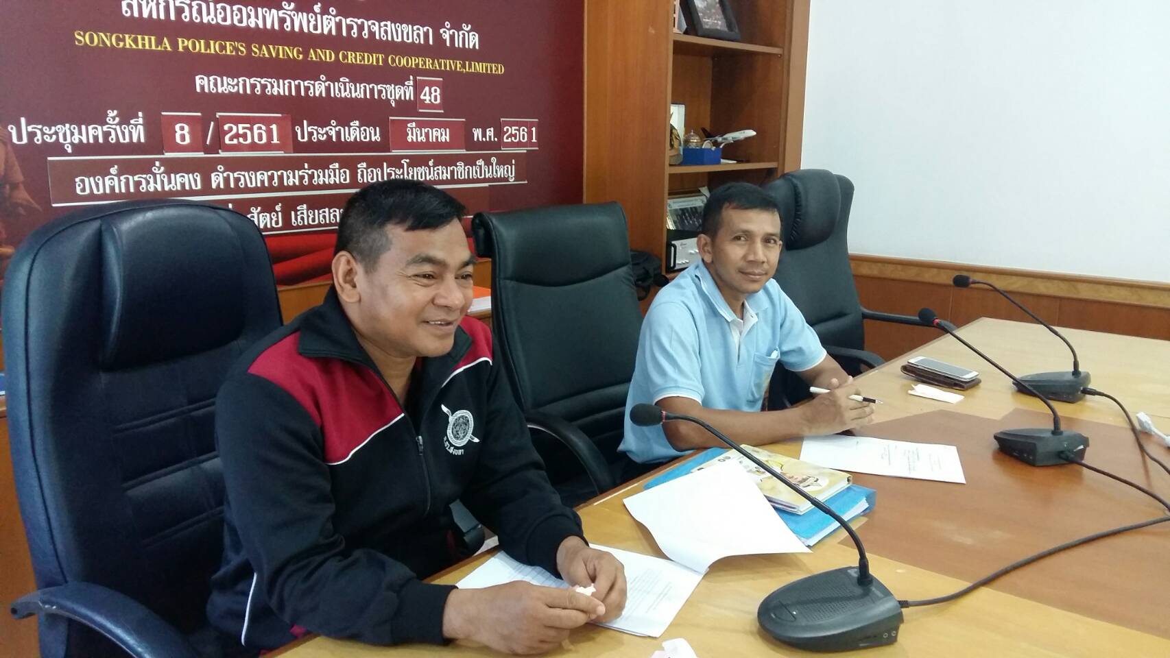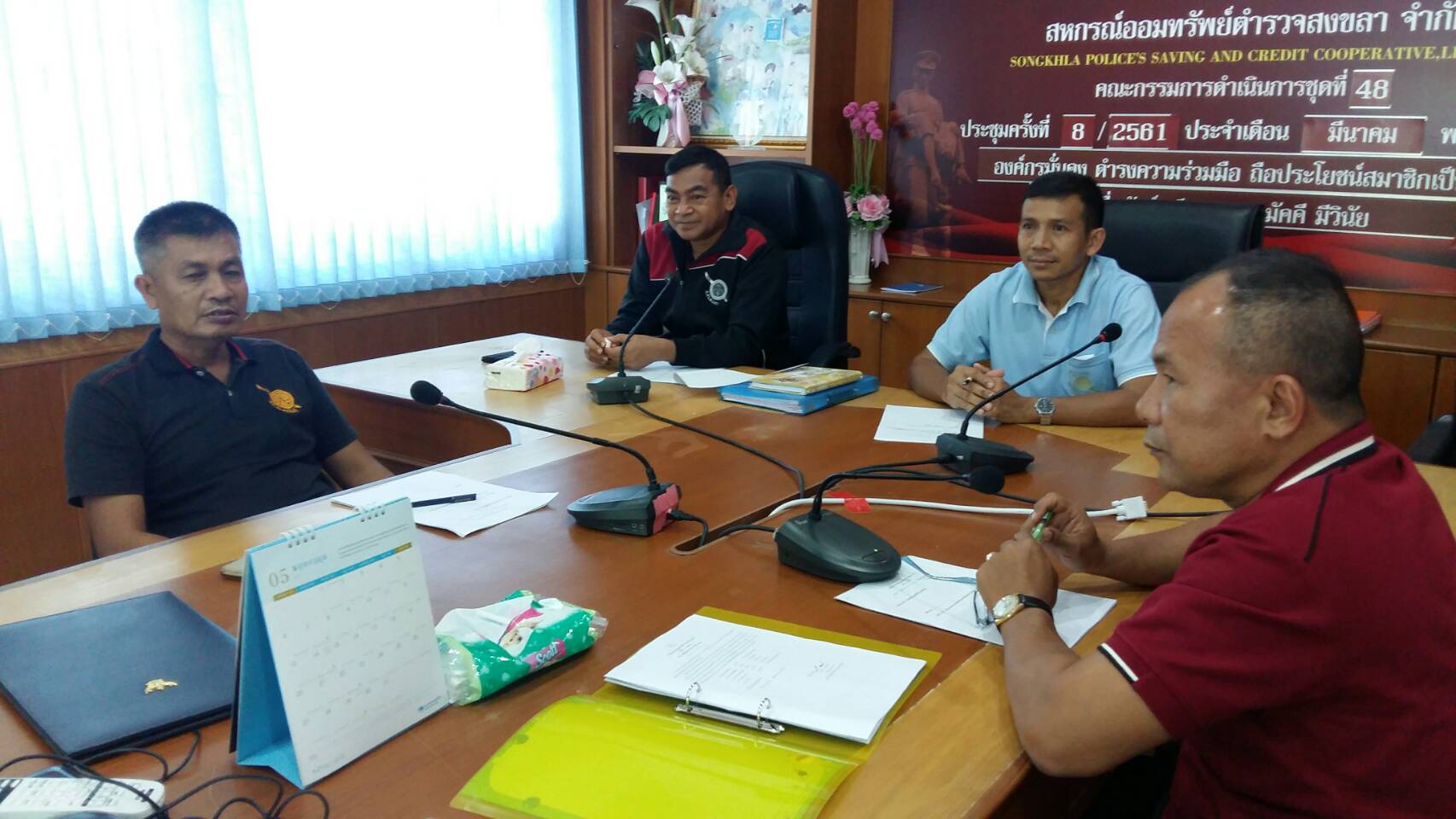 วันที่ 2 พฤษภาคม 2561 พ.ต.ท.จริน แสงแก้ว ประธานกรรมการ สหกรณ์ออมทรัพย์ตำรวจสงขลา จำกัด พร้อมคณะกรรมการดำเนินการรับสมัครเจ้าหน้าที่ ได้ประชุมเพื่อเตรียมความพร้อมในการรับสมัครเจ้าหน้าที่ใหม่ ณ ที่ทำการสหกรณ์ออมทรัพย์ตำรวจสงขลา จำกัด