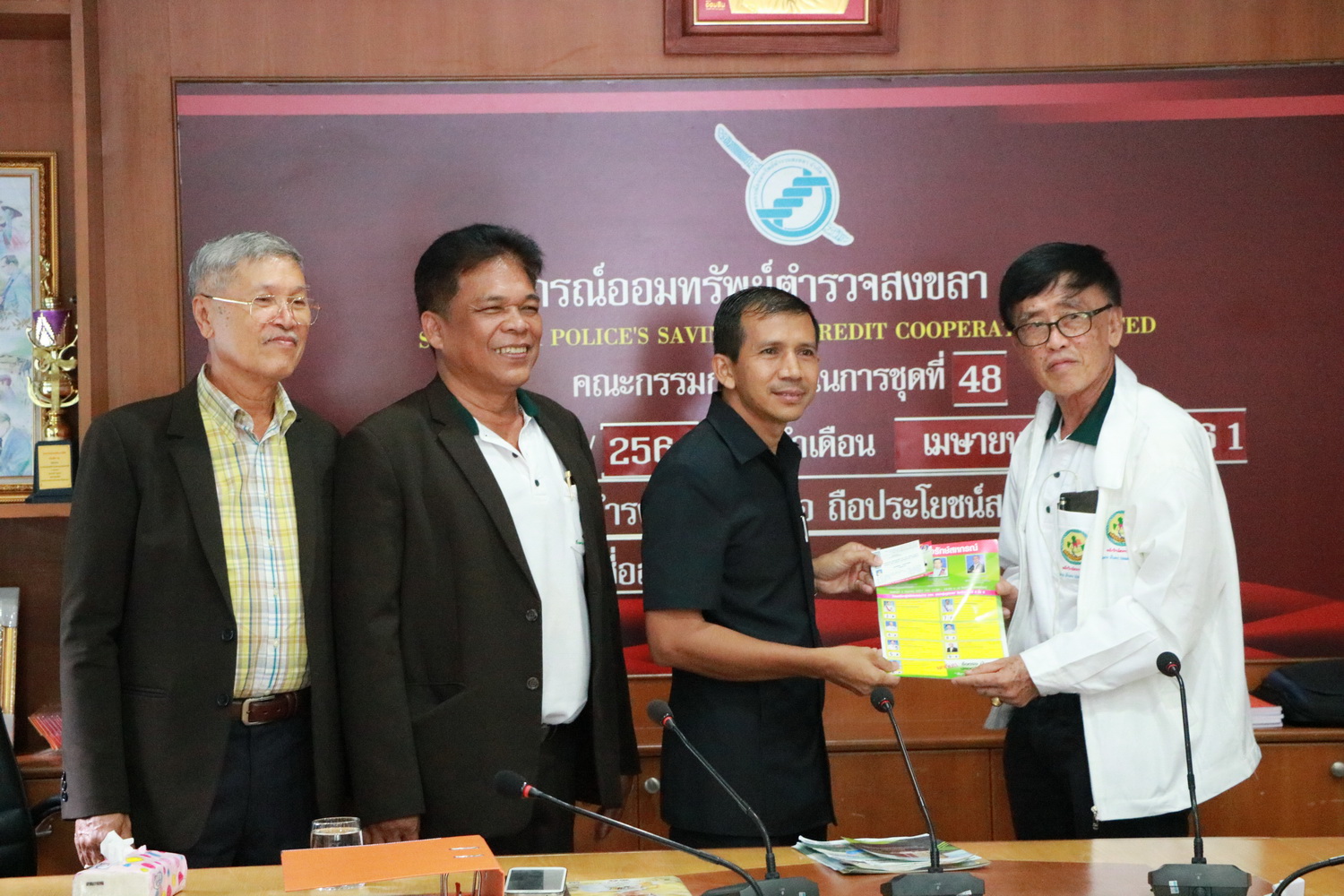 วันที่ 24 พฤษภาคม 2561 เวลา 12.30 น. พ.ต.ท.จริน แสงแก้ว ประธานกรรมการ ด.ต.เฉลิมพร คงพันธุ์ เลขานุการ และเจ้าหน้าที่ ได้ทำการต้อนรับคณะจากสมาคมฌาปนกิจสงเคราะห์สหกรณ์สมาชิกของชุมนุมสหกรณ์ออมทรัพย์แห่งประเทศไทย และสมาคมฌาปนกิจสงเคราะห์สมาชิกชุมนุมสหกรณ์ออมทรัพย์ครูไทย ได้เดินทางมาเยี่ยมชมสหกรณ์ออมทรัพย์ตำรวจสงขลา จำกัด