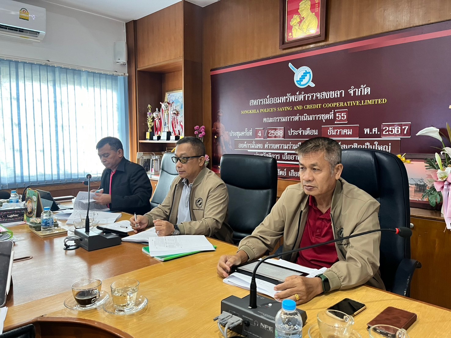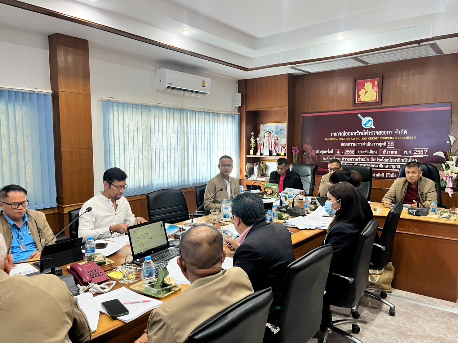วันพฤหัสบดีที่ 9 มกราคม 2568 พ.ต.ท.เอกพงษ์ ขวัญหมัด ประธานกรรมการสหกรณ์ พร้อมด้วย คณะกรรมการ ผู้อำนวยการกลุ่มส่งเสริมสหกรณ์ 1 ผู้ตรวจสอบกิจการ และฝ่ายจัดการ ร่วมกันประชุมคณะกรรมการดำเนินการ ชุดที่ 55 ครั้งที่ 4/2568 ณ ห้องประชุมสหกรณ์ออมทรัพย์ตำรวจสงขลา จ