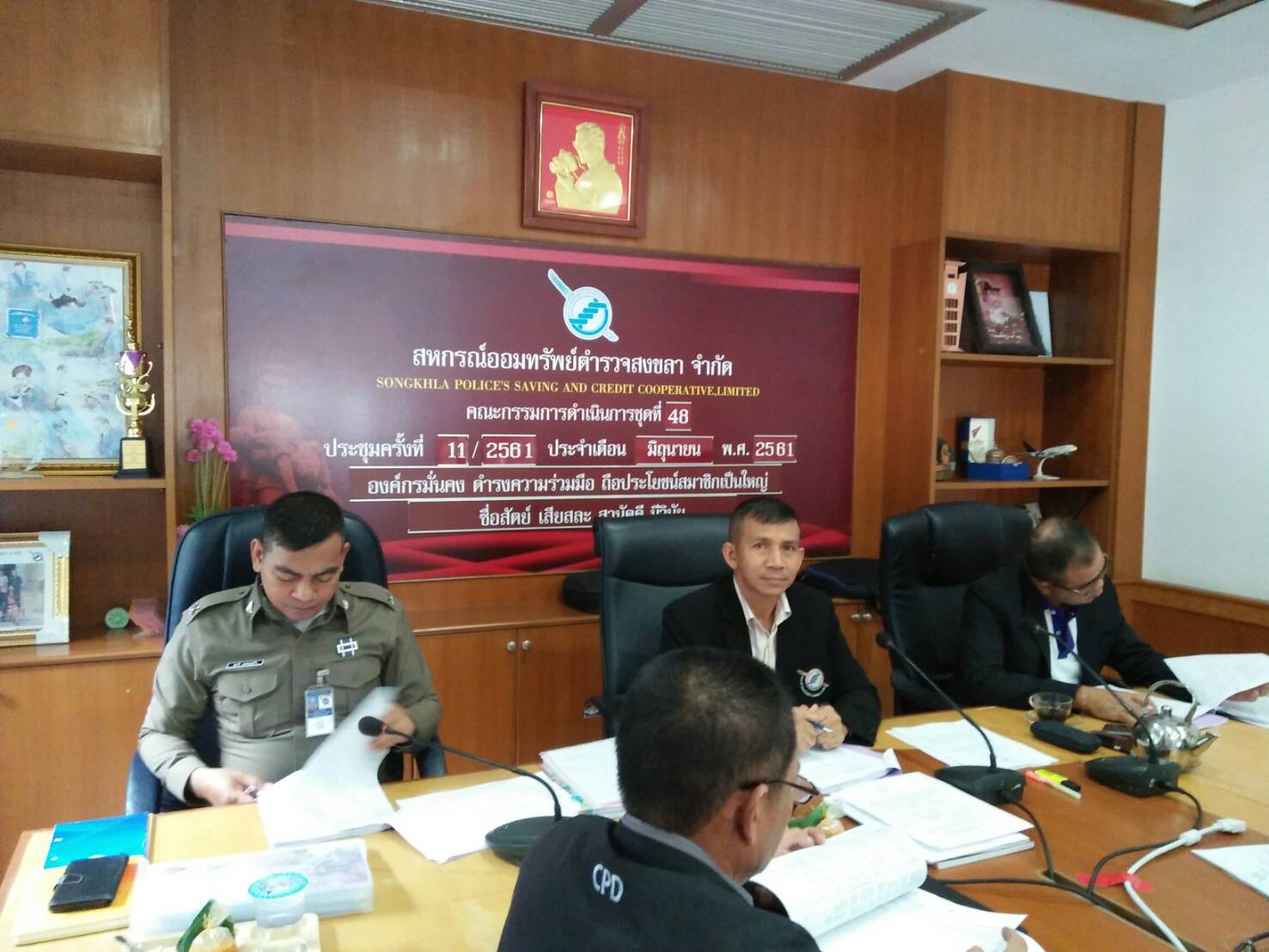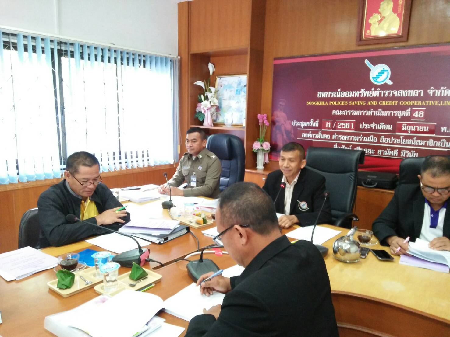 วันที่ 10 กรกฎาคม 2561 เวลา 9.00 น. พ.ต.ท.จริน แสงแก้ว ประธานกรรมการ พร้อมด้วยคณะกรรมการดำเนินการ ร่วมกันประชุมครั้งที่ 11/2561 ประจำเดือน มิถุนายน 2561