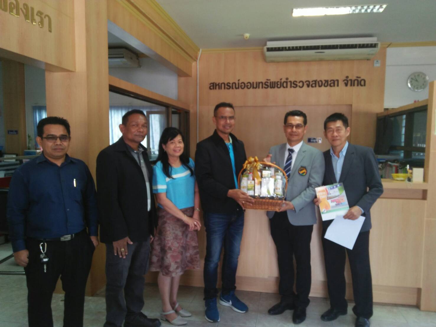 วันที่ 21 ธ.ค. 61 เวลา 11.00 น.  ด.ต.วัชระ สุกใส รองประธานสหกรณ์ออมทรัพย์ตำรวจสงขลา จำกัด พร้อมด้วย ด.ต. สุเทพ บัวหมุน เหรัญญิก นางวิมล  บุญรอด ผู้จัดการ และนายธวัชชัย  ธรรมรัตน์ ผู้ช่วยผู้จัดการ ได้ให้การต้อนรับและรับมอบกระเช้าสวัสดีปีใหม่จาก สหกรณ์ออมทรัพย์โรงพยาบาลหาดใหญ่ จำกัด