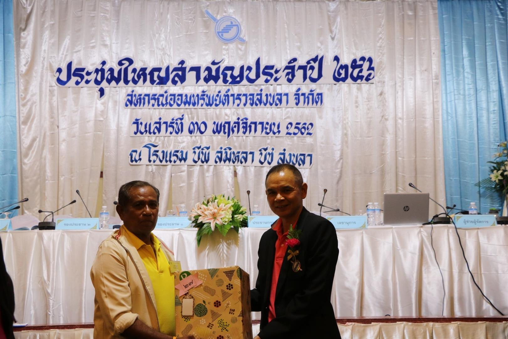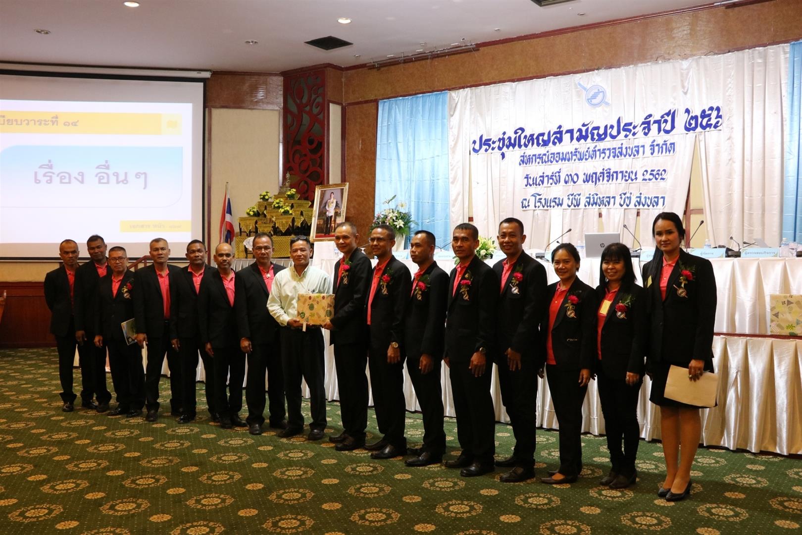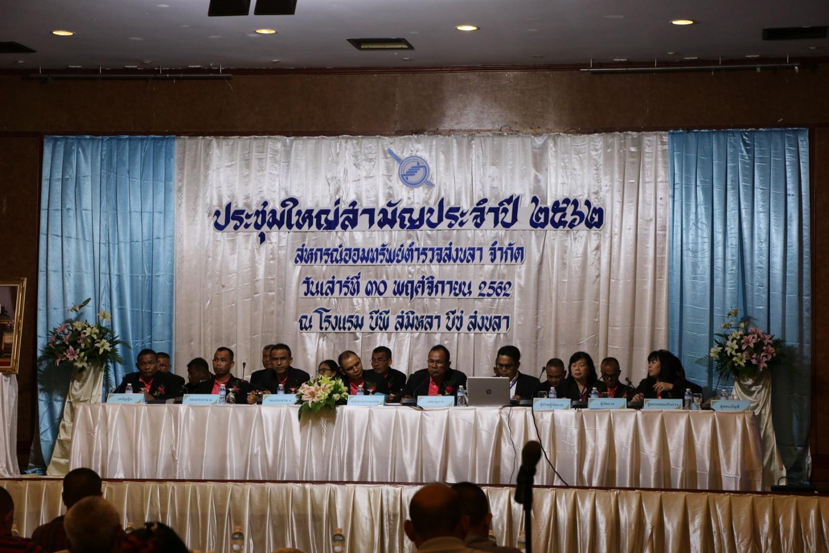 วันเสาร์ ที่ 30 พฤศจิกายน 2562 สหกรณ์ออมทรัพย์ตำรวจสงขลา จำกัด จัดการประชุมใหญ่สามัญประจำปี 2562 ณ โรงแรม บีพี สมิหลา บีช อำเภอเมืองสงขลา จังหวัดสงขลา