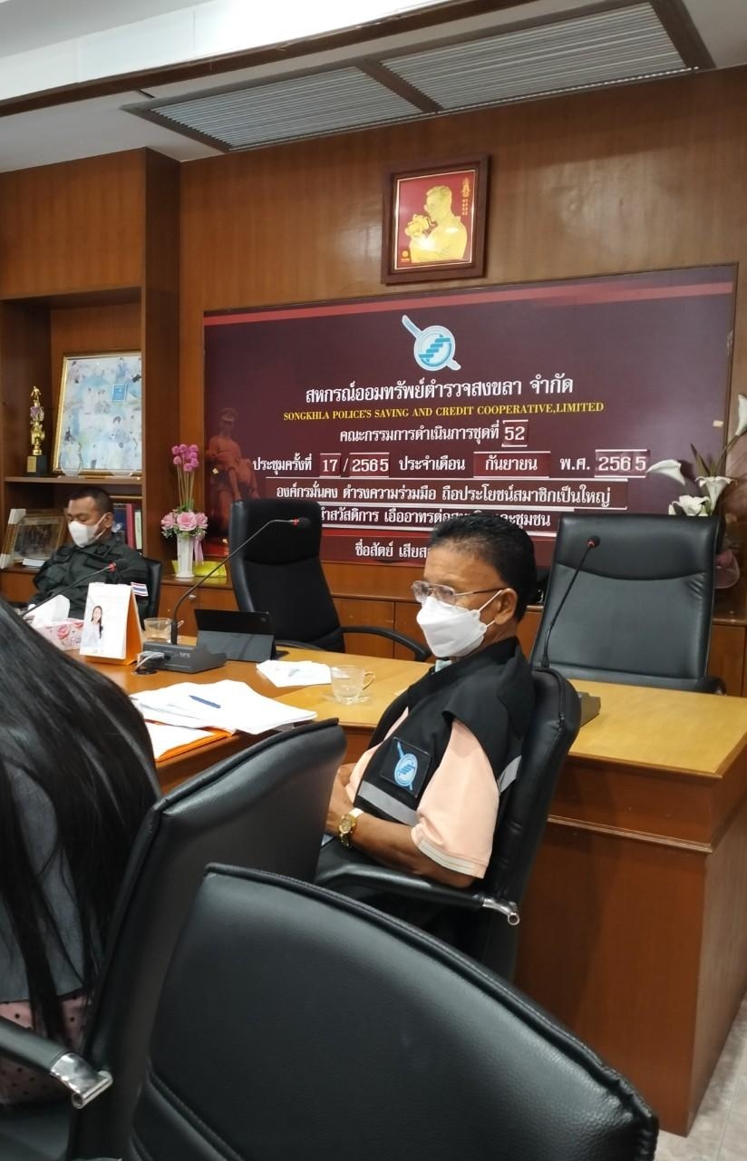 วันศุกร์ ที่ 7 ตุลาคม 2565 เวลา 13.00 น. พ.ต.ท.พนม จิตภักดี ประธานกรรมการสหกรณ์ฯ และคณะกรรมการสหกรณ์ฯ ชุดที่ 52 ประชุมดำเนินการ ครั้งที่ 17/2565  ณ ห้องประชุมสหกรณ์ออมทรัพย์ตำรวจสงขลา จำกัด