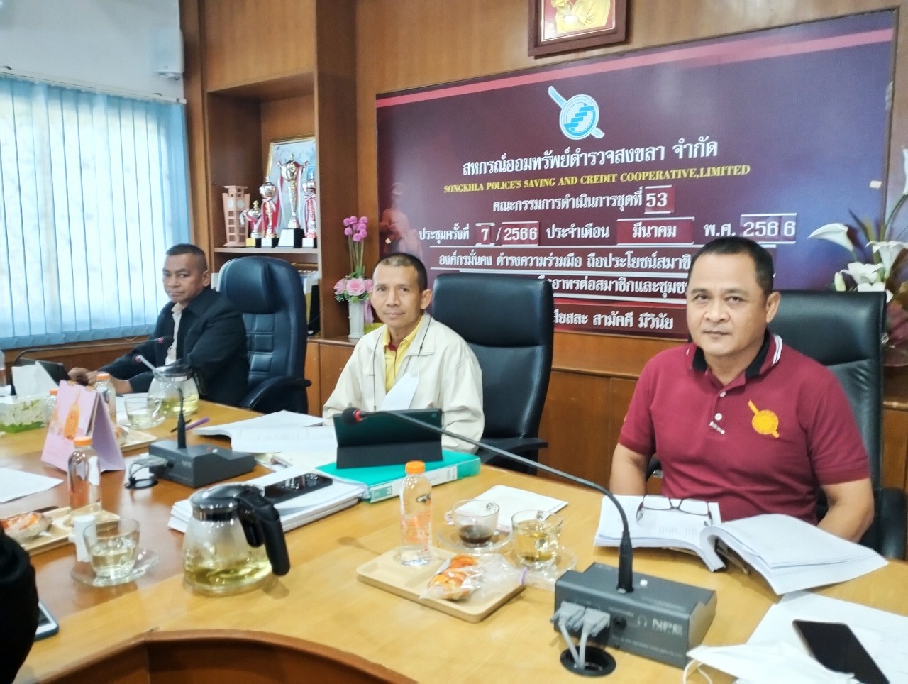 เมื่อวันที่ 10 เมษายน 2566  เวลา 09.30 น. พ.ต.ท.จริน แสงแก้ว ประธานกรรมการฯ  กรรมการฯ และฝ่ายจัดการ ได้ร่วมกันประชุมดำเนินการ ครั้งที่ 7/2566 ณ ห้องประชุมสหกรณ์ออมทรัพย์ตำรวจสงขลา จำกัด