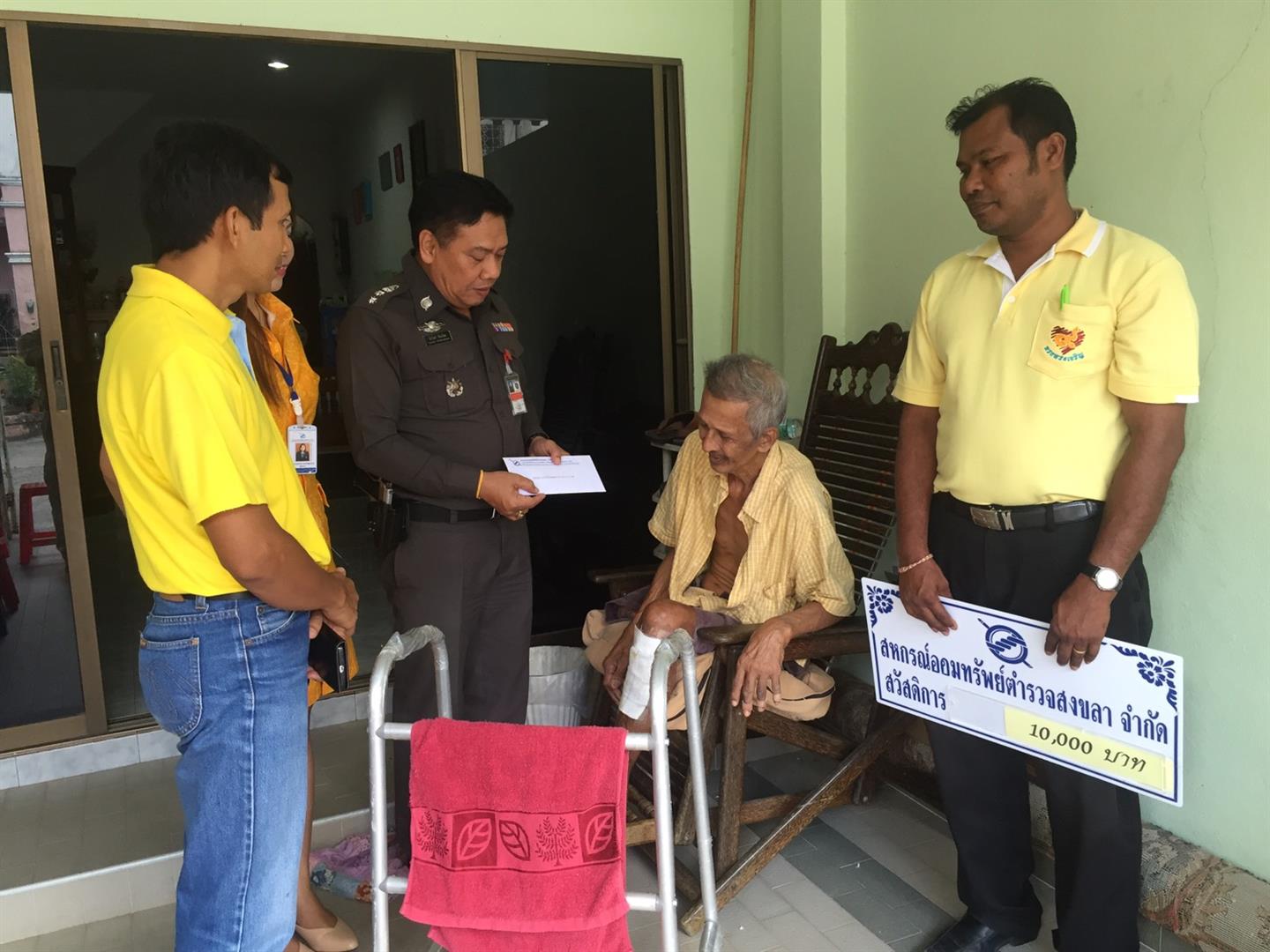 พ.ต.อ.ชัยวัฒน์ นิตยวิมล ประธานกรรมการสหกรณ์ออมทรัพย์ตำรวจสงขลา จำกัด พร้อมด้วย พ.ต.ท.จริน แสงแก้ว รองประธาน ด.ต.ยงยุทธ สุวรรณโณ ประธานกรรมการเงินกู้ และ น.ส.นิชาภา กิจทวีอุดมโชติ ผุ้จัดการสหกรณ์ มอบเงินสวัสดิการสมาชิกทุพพลภาพราย ด.ต.คเณศ กาญจนรังษี ณ บ้านพัก ต.ควนลัง อ.หาดใหญ่ จ.สงขลา