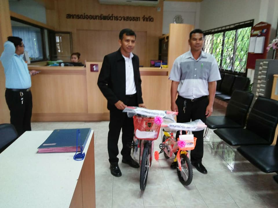 วันที่ 11 มกราคม 2561 สหกรณ์ออมทรัพย์ตำรวจสงขลา จำกัด โดย พ.ต.ท.จริน แสงแก้ว ประธานกรรมการสหกรณ์ พร้อมด้วยคณะกรรมการ ผู้จัดการ และเจ้าหน้าที่ ได้มอบรถจักรยาน เพื่อเป็นของขวัญ เนื่องในวันเด็กแห่งชาติ ประจำปี 2561 แก่ตัวแทนหน่วยงานในสังกัด