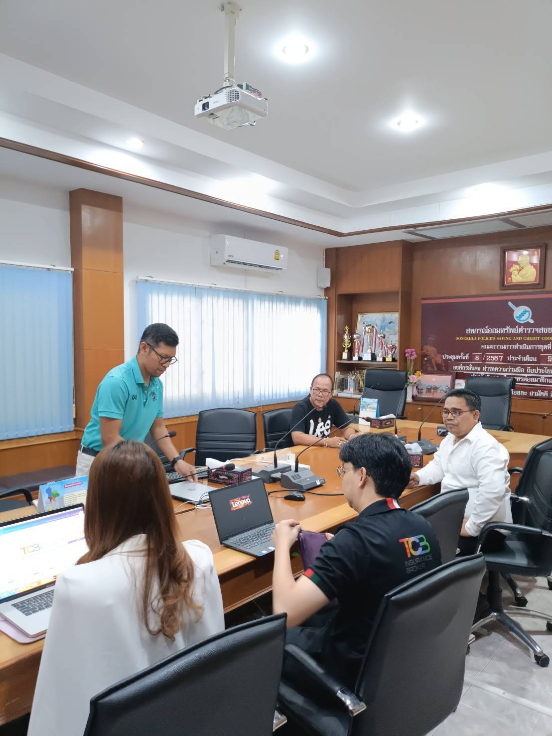 วันพุธที่ 24 เมษายน 2567 ตัวแทน บริษัท ทักษิณคอนซัลแตนท์ แอนด์ โบรกเกอร์ จำกัด มาแนะนำการทำประกัน กรณีสมาชิกถูกออก ล้มละลาย โดยมี ร.ต.ท.เฉลิมพร คงพันธุ์ เลขานุการ พร้อมด้วย ฝ่ายจัดการ ได้ให้การต้อนรับ ณ ห้องประชุมสหกรณ์ออมทรัพย์ตำรวจสงขลา จำกัด