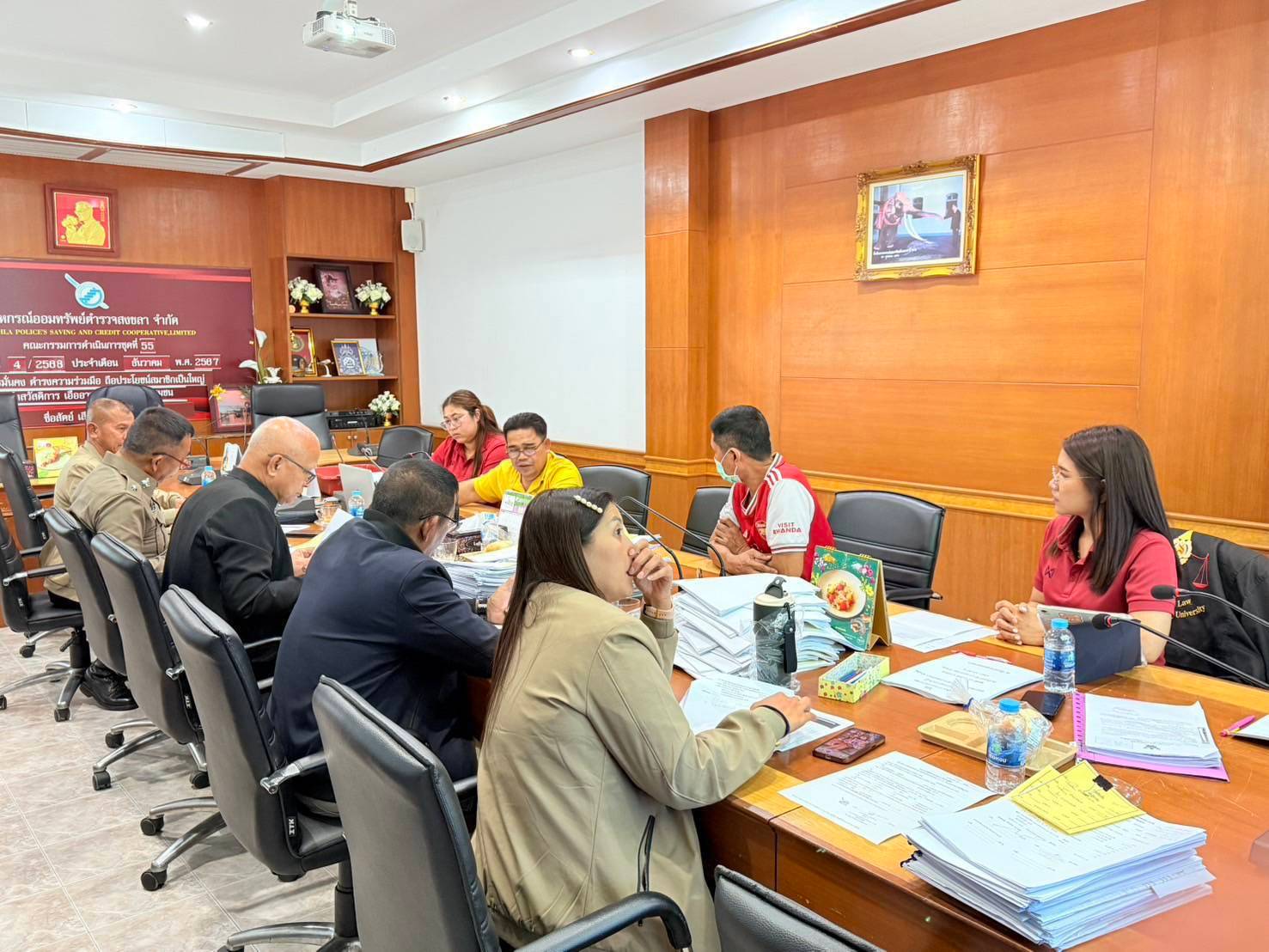 วันจันทร์ที่ 27 มกราคม 2568 ร.ต.ท.สุเทพ บัวหมุน ประธานกรรมการเงินกู้ พร้อมด้วย คณะกรรมการเงินกู้ และฝ่ายจัดการ เรียกสมาชิกเข้าพบเพื่อหาแนวทางการชำระหนี้ มาเข้าพบจำนวน 2 ราย 1. ด.ต.ศรชัย ศรีขวัญ 2. ร.ต.อ.ปิยะพงศ์ เหร็ม และร่วมกันประชุมเงินกู้ชุดที่ 55 ครั้งที่ 5/2568 ณ ห้องประชุมสหกรณ์ออมทรัพย์ตำรวจสงขลา จำกั