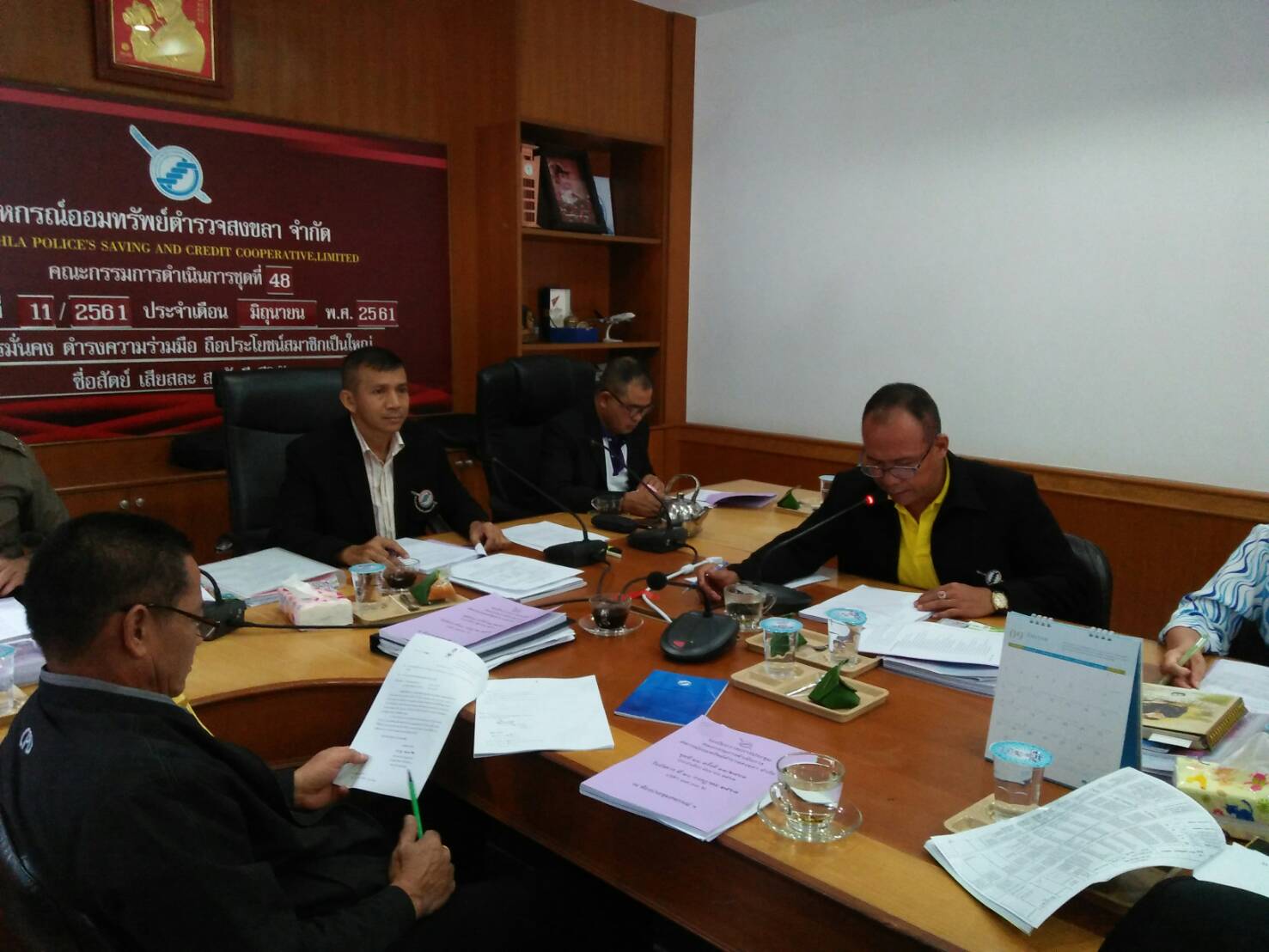 วันที่ 10 กรกฎาคม 2561 เวลา 9.00 น. พ.ต.ท.จริน แสงแก้ว ประธานกรรมการ พร้อมด้วยคณะกรรมการดำเนินการ ร่วมกันประชุมครั้งที่ 11/2561 ประจำเดือน มิถุนายน 2561
