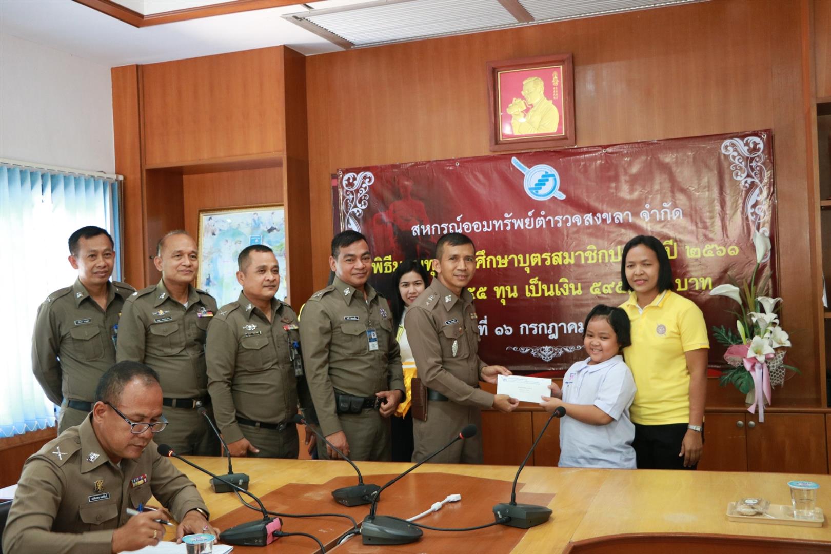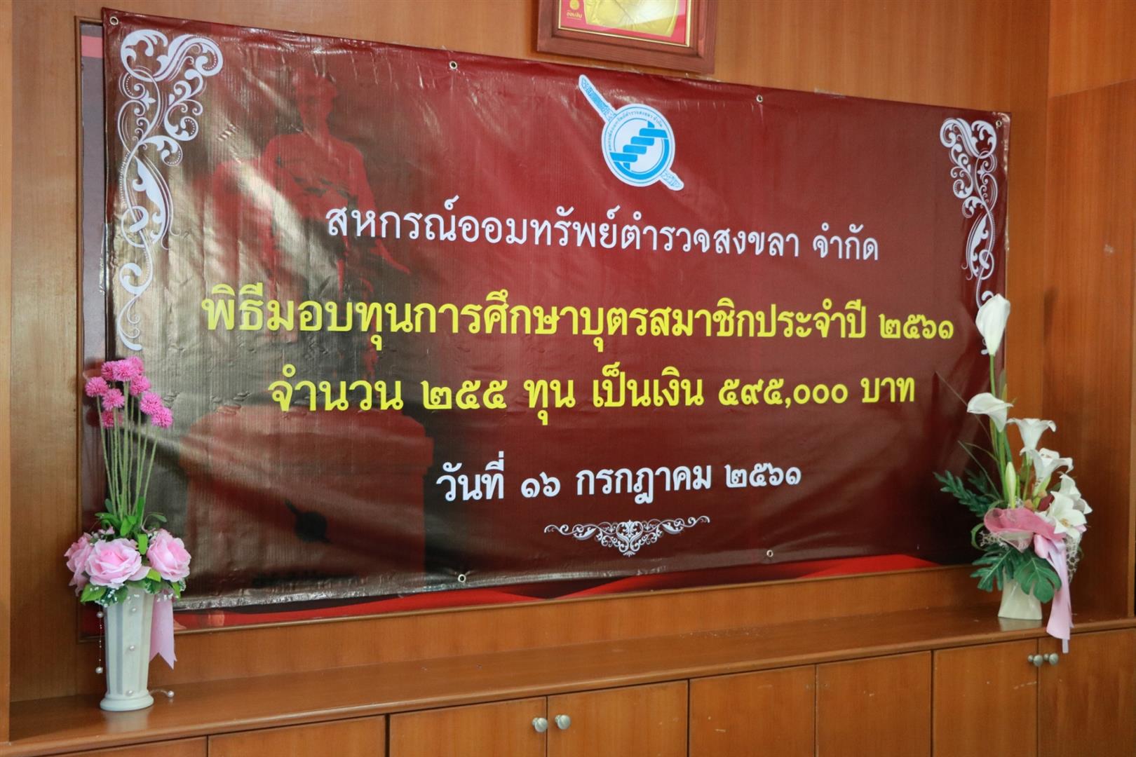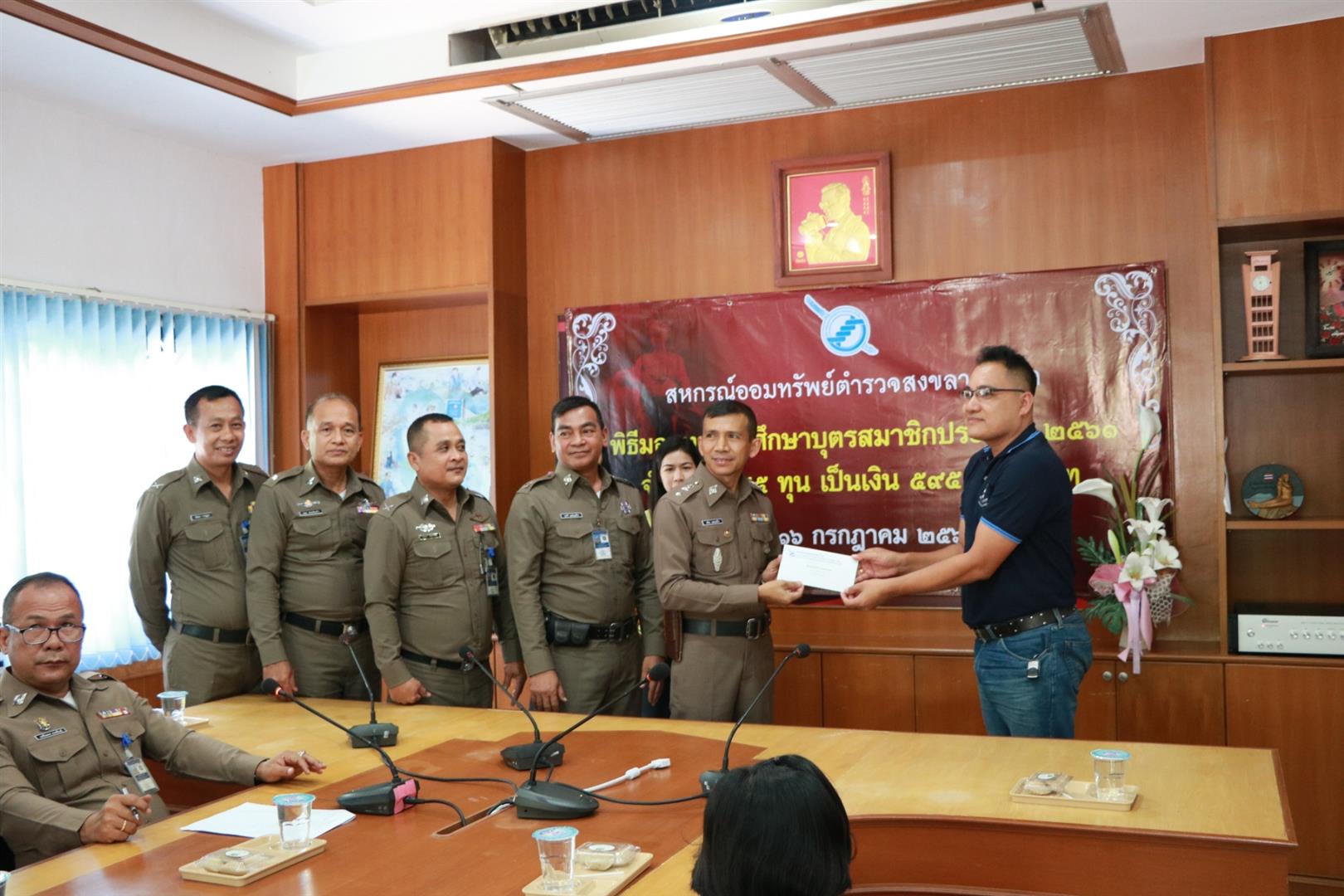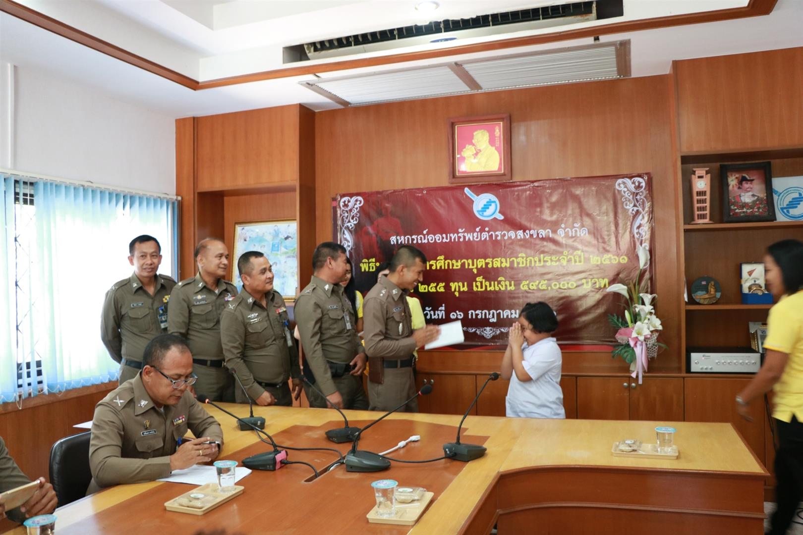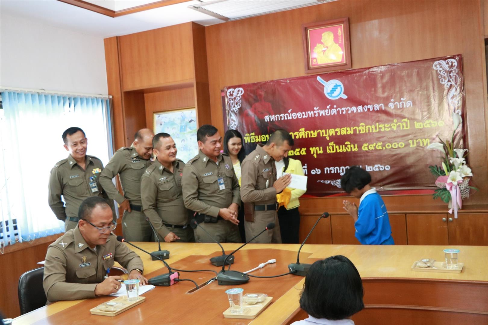 วันที่ 16 กรกฎาคม 2561 พ.ต.ท.จริน แสงแก้ว ประธานคณะกรรมการพร้อมด้วยคณะกรรมการดำเนินการสหกรณ์ฯ มอบทุนการศึกษาบุตร ประจำปี 2561 จำนวน 255 ทุน เป็นเงิน 595,000 บาท ณ ห้องประชุมสหกรณ์ออมทรัพย์ตำรวจสงขลา จำกัด