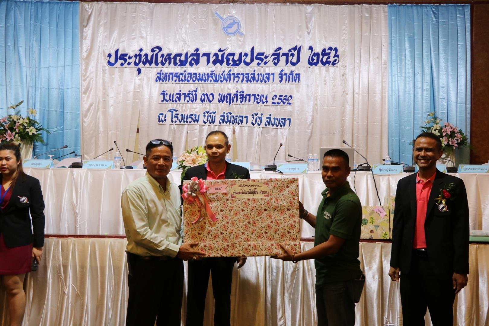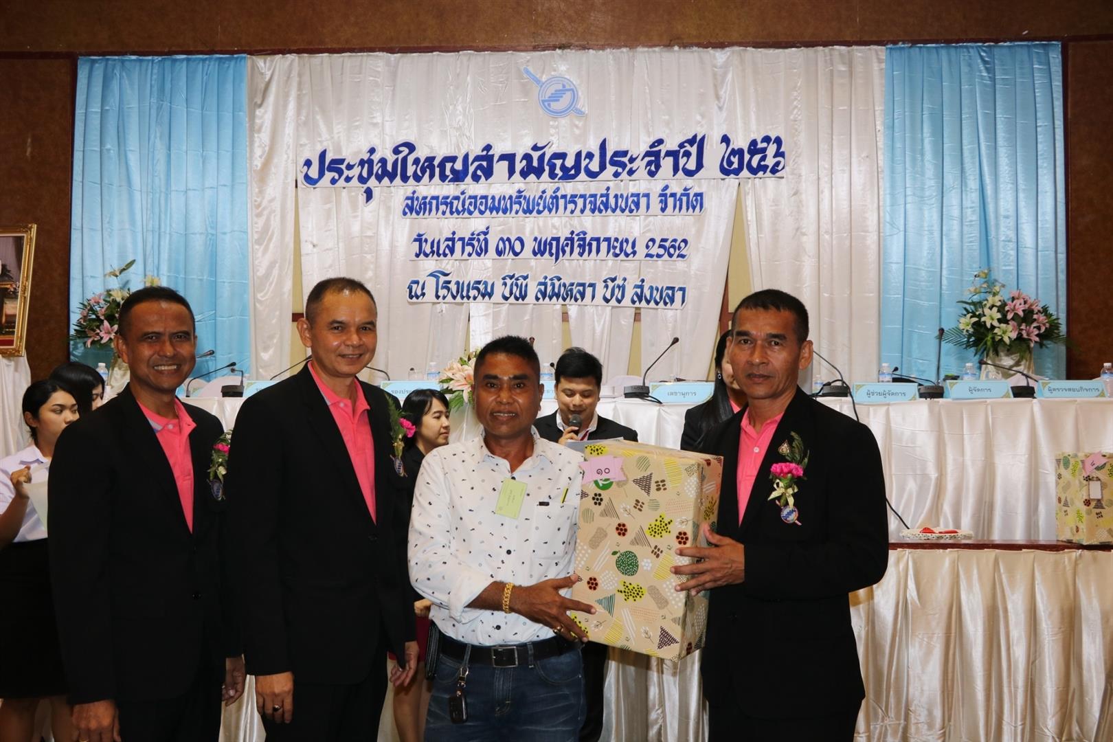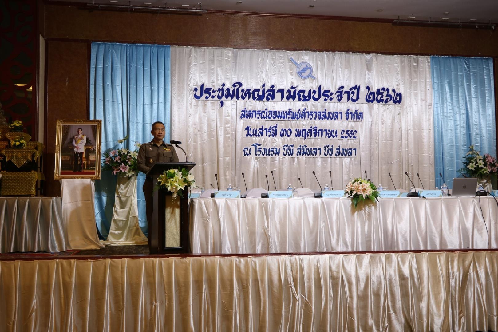 วันเสาร์ ที่ 30 พฤศจิกายน 2562 สหกรณ์ออมทรัพย์ตำรวจสงขลา จำกัด จัดการประชุมใหญ่สามัญประจำปี 2562 ณ โรงแรม บีพี สมิหลา บีช อำเภอเมืองสงขลา จังหวัดสงขลา