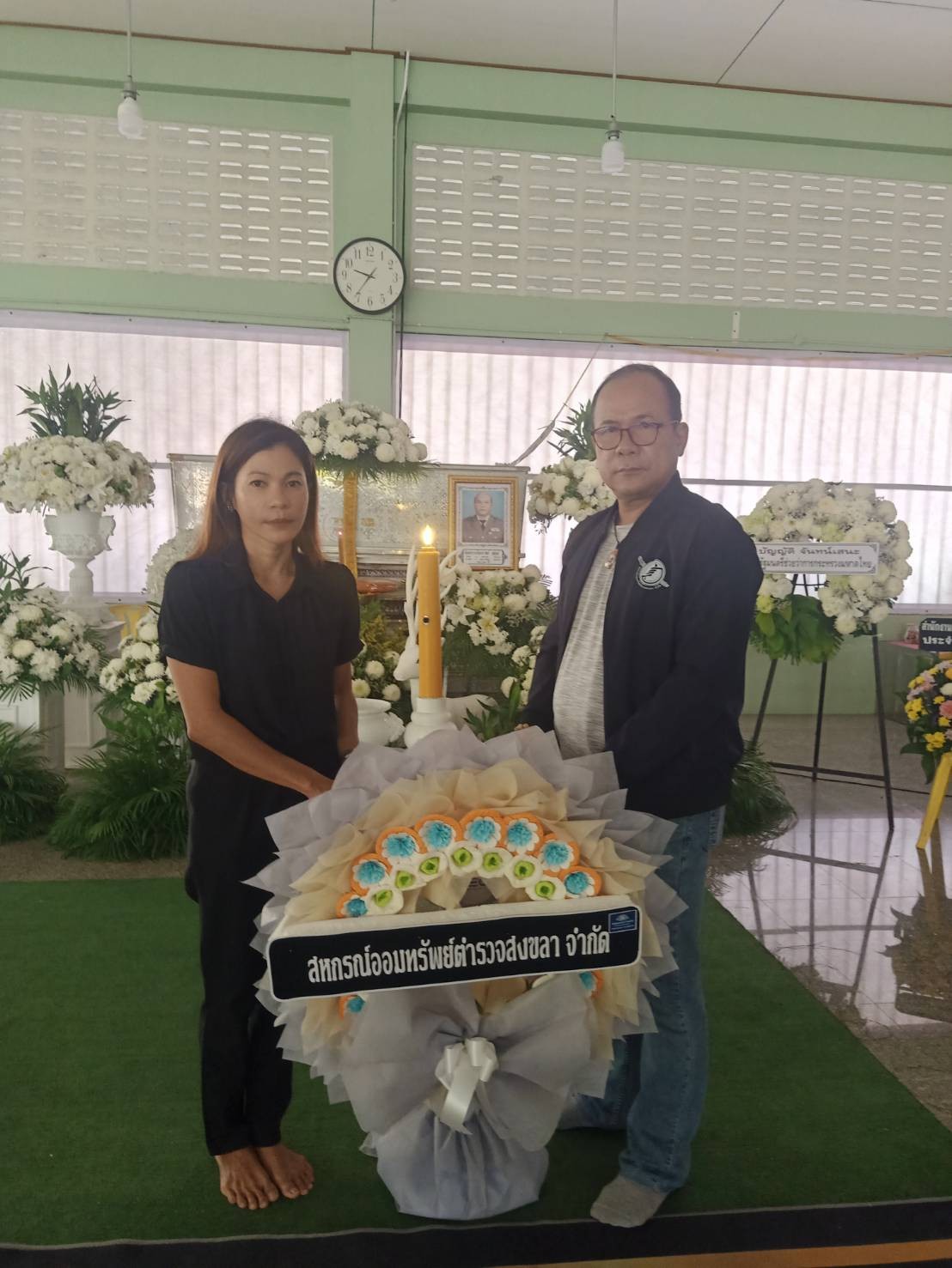 วันพุธที่ 7 ก.พ.2567 เวลาประมาณ 09.45 น. ร.ต.ท.เฉลิมพร คงพันธุ์ กรรมการเลขาฯเป็นตัวแทน ของสหกรณ์ฯ ร่วมวางพวงหรีดเคารพศพ ของ ร.ต.ท.ประวิทย์ วุฒิภูมิ ข้าราชการบำนาญ พร้อมมอบเงินค่าจัดการศพ จำนวนเงิน 10,000 บาท และชี้แจงรายละเอียดเกี่ยวกับสวัสดิการของสมาชิกให้กับทางครอบครัวให้ทราบโดยสังเขป ณ วัดเลียบ อ.เมืองสงขลา